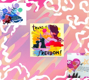 The San Francisco-based graphic artist Broobs tells Mic that the movement is as much about protesting injustices and organizing for change as it is about taking time for rest and “reminding each other of what we're fighting for.” Their collage work often features a central figure, like James Baldwin or Barbara Gittings, backgrounded by imagery of plants or other arboreal shapes. In some ways, their pictures remind us that we’re continuing the fights against the same threads of racism and homophobia that Baldwin and Gittings battled. They also help us remember that marginalized people have survived, and will survive, multiple manifestations of harm. Broobs’s art strives to help people feel hopeful and less alone, which is important, because movements against anti-trans violence, homophobia, and racism are won together.