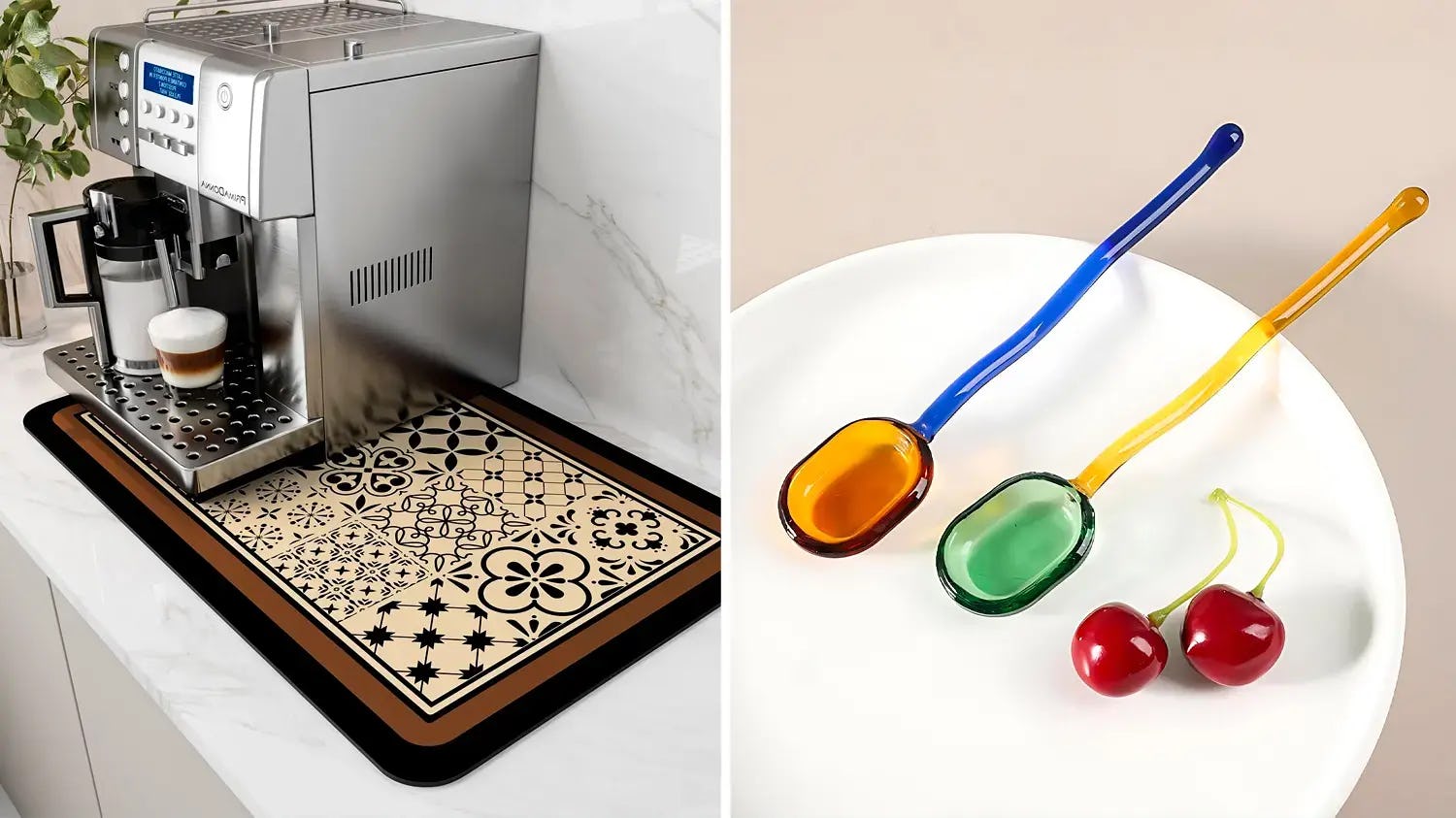 03An absorbent coffee mat with a luxe pattern