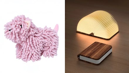 This charming bird lamp is made from a hard-plastic material with a wood-like design that’s surprisingly natural looking. It comes complete with a perch stand you can place on shelves and counter tops and can be charged using the included type C USB charger. To dim the LED bulb and switch between the three different lighting features, just tap the top of its head.