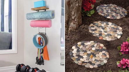 This storage rack can either help you create a neat little home gym space or organize the one you have. Three racks allow it to hold up to three yoga mats or foam rollers at a time, while the top shelf is a good spot for smaller items like blocks or a kettleball. Three hooks at the bottom are ideal for hanging items like jump ropes or gym towels.