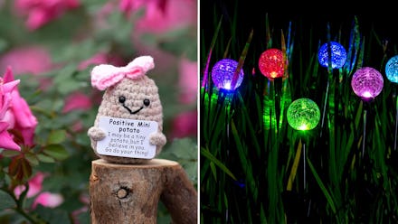 Add some pops of bright color to your yard with these solar garden lights. They come in a pack of three and are on stakes that are easy to press into the garden or grassy areas around your home. They’re color-changing and have a crackle appearance, and are super low-maintenance thanks to solar panels that charge in the sun.