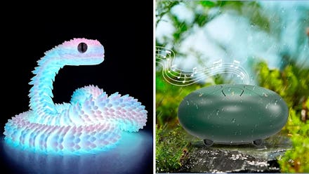 Looking for fun ways to liven up your desk at work? Search no further than this snake. It’s made from 3-D printed PLA material that can bend and twist, making it great for blowing off steam when you’re feeling stressed. Choose from eight colors: pink, green, blue, and more.