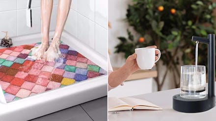 This cleverly designed shower mat has so many practical features — and it comes in lots of cool designs, too. Its nonslip backing ensures it’ll feel sturdy on your tile, while the loofah-like texture helps to give your feet a good scrub. And because it has an open weave, it won’t obstruct the flow of water, even though it covers the drain.