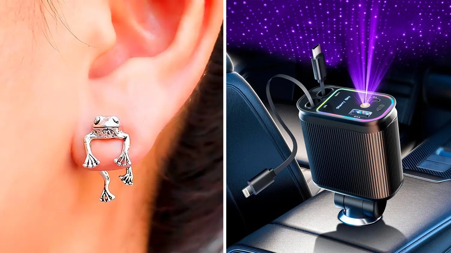 This epic car charger features two retractable charging cables that extend out to 31 inches: one lightning, and one type-C. Two additional ports (one type-C and one USB) mean you can also power up to four devices simultaneously. Plus, the built-in projector even casts the starry night sky onto the roof of your car for an added touch of fun.